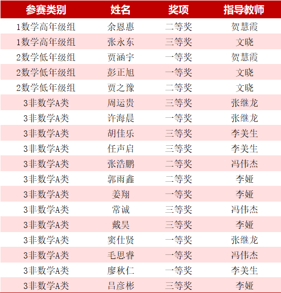 获奖学生名单
